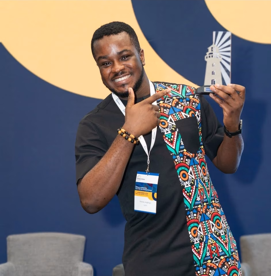 His innovative approach to design and storytelling has garnered international recognition, including the joining Falling Walls Engage as an Advisory Board member in 2022 and the iF Design Student Award in 2024 for his humanitarian design project, ALLSPACE—a modular emergency housing solution inspired by traditional African huts.